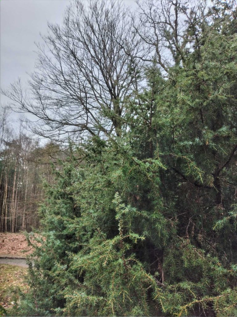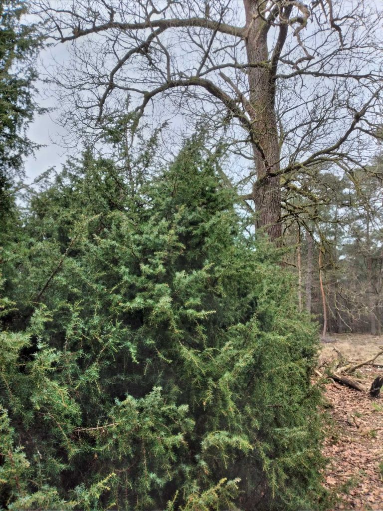 Onlangs had ik weer eens de transformatie wandeling Velhorst gelopen, toen ik op het einde met degene die bij me was, even stilstond bij de jeneverbesstruiken op de laatste plek van de wandeling, bij de grote beuk. Dat zijn niet de jeneverbesstruiken die een rol hebben in de transformatie wandeling. We stonden niet direct bij de beuk die net iets van het pad afligt, ook niet bij de grote eik daar tegenover die zich ook iets verder van het pad af bevindt. We stonden bij de jeneverbesstruiken die grenzen aan het pad en die om de grote eik heen staan. Op deze plek had ik eerder gestaan en toen had ik gevoeld dat deze struiken graag wilden dat ik een keer voor hen terugkwam omdat ze iets wilden vertellen. Dat vertelde ik aan degene die bij me was. Ik zei erbij dat ik dat nu niet wilde doen omdat me dat na de transformatie wandeling teveel werd. Maar dit was de reden dat ik me even op deze struiken concentreerde. Meteen kreeg ik in het Duits de woorden pijnappelklier en ogen aangereikt. Die schreef ik op want ik ken mezelf, zoiets vergeet ik. Ik gaf de struiken aan dat ik snel zou terugkomen om te horen wat ze kwijt wilden, en we trokken verder.